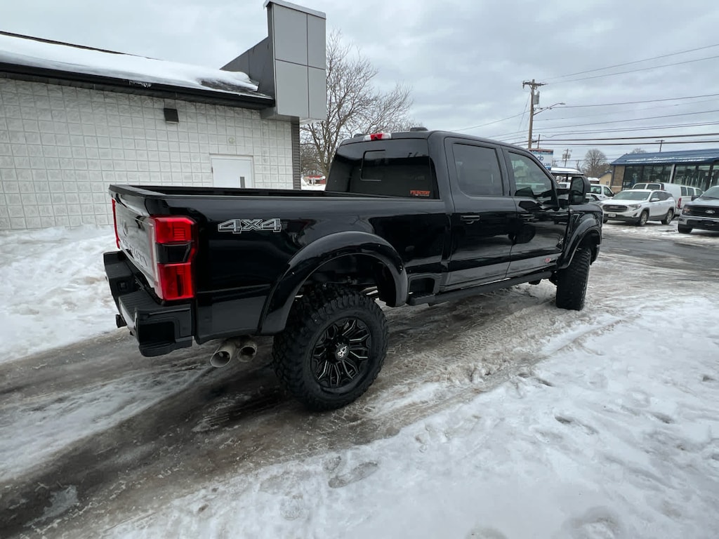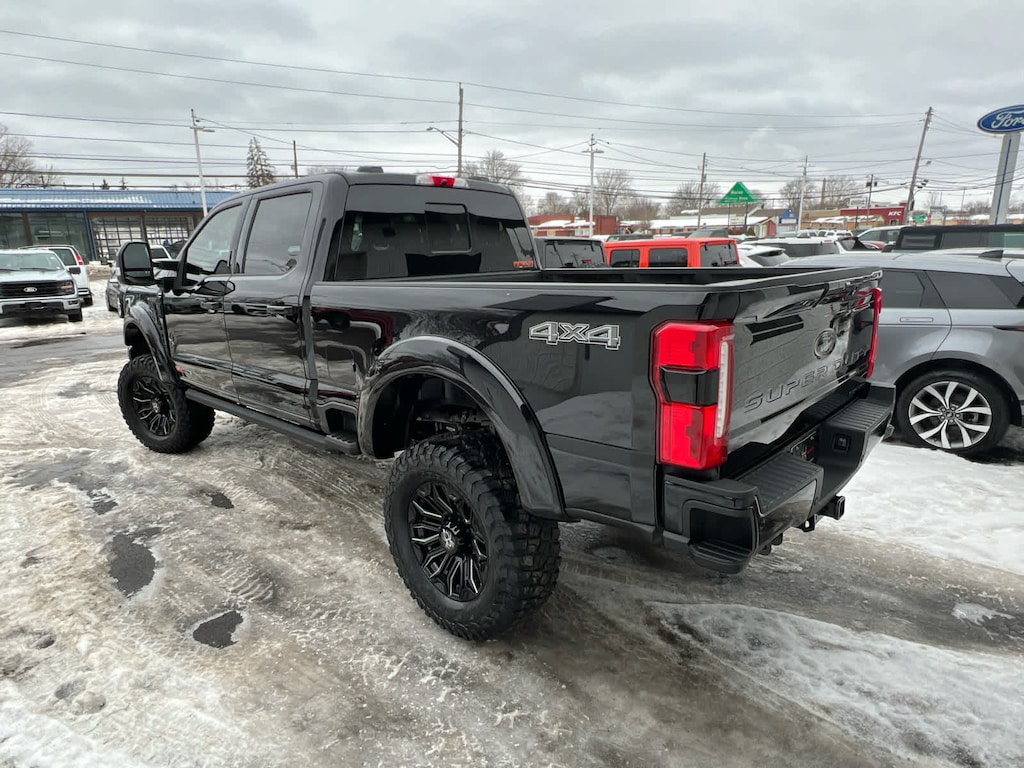 ENGINE: 6.7L HIGH OUTPUT POWER STROKE V8 DIESEL Turbo diesel B20, manual push-button engine-exhaust braking and Operator Commanded Regeneration (OCR), 250 Amp Alternator, 34 Gallon Fuel Tank, 3.31 Axle Ratio, High Capacity 11.6 Axle Upgrade Package, increased GCW and upgraded 11.6 axle, Note: Salespersons portfolio or trailer towing guide should be consulted for specific trailer towing or camper limits and corresponding required equipment, axle ratios and model availability, See supplemental reference for vehicle height consideration, Dual AGM 68 AH Battery, BLACK APPEARANCE PACKAGE front and rear black Ford ovals, box side decal (4x4, FX4 or Tremor) and ebony black fender vent surround dark fender badge, Rear Wheel Well Liners, Black Painted Front Grille Surround, Ebony Black Painted Mirror Caps, Tough Bed Spray-In Bedliner, tailgate-guard, black box bed tie-down hooks and black bed attachment bolts, Body Color Front & Rear Bumpers, Wheels: 20 Ebony Black High Gloss, Black premium painted aluminum, gloss black hub cover/center ornament, Tires: LT275/65Rx20E BSW Automatic Transmission, Spare may not be the same as road tire, 6 Ebony Black Angular Running Boards, LARIAT ULTIMATE PACKAGE Tailgate Step & Handle, Head-Up Display, 4-Way Adjustable Headrests, Power-Deployable Running Boards, Radio: B&O Unleashed Sound System by Bang & Olufsen, HD Radio w/14 speakers including subwoofer, LARIAT PREMIUM PACKAGE lane departure warning, Pro Trailer Hitch Assist, Ford Co-Pilot 360 Assist 2.0, rear view camera and reverse brake assist, Pre-Collision Assist, Automatic Emergency Braking (AEB), pedestrian detection, forward collision warning, dynamic brake support and intersection assist, Post-Collision Braking, Lane-Keeping System, lane-keeping alert, lane-keeping aid and driver alert, Front & Rear Parking Sensors, Automatic High Beam, Adaptive Cruise Control w/Stop-and-Go, lane centering and predictive speed assist, Power-Sliding Rear-Window w/Defrost, Pro Trailer Backup Assist, trailer reverse guidance, TWIN PANEL POWER MOONROOF map lights and moonroof switches, SECURICODE KEYLESS ENTRY KEYPAD (DRIVERS SIDE) Integrated into the B-pillar, ELECTRONIC-LOCKING W/3.55 AXLE RATIO, TRANSMISSION: TORQSHIFT 10-SPEED AUTOMATIC SelectShift and selectable drive modes: normal, eco, slippery roads, tow/haul and off-road.