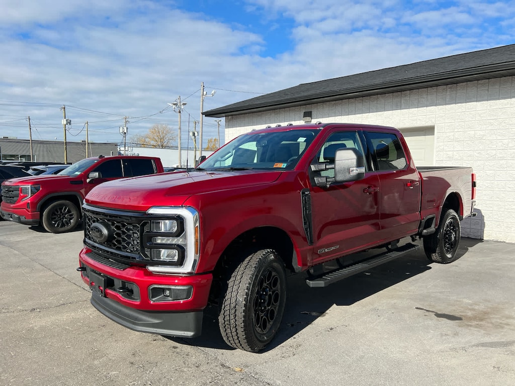 Heated Seats, NAV, WiFi Hotspot, 4x4, Turbo, Bed Liner, ENGINE: 6.7L 4V OHV POWER STROKE V8 TURBO DIESEL B20, ELECTRONIC-LOCKING W/3.55 AXLE RATIO, Tow Hitch. Ruby Red Metallic Tinted Clearcoat exterior and Medium Dark Slate interior.