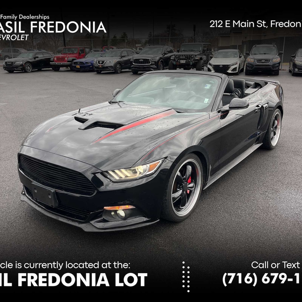 Turn heads and feel the thrill of open-air driving with this stylish 2016 Mustang EcoBoost Premium Convertible. Combining iconic muscle car design with modern performance, this Mustang delivers an exciting yet efficient driving experience thanks to its turbocharged engine and refined handling.Under the hood, youll find a responsive 2.3L EcoBoost turbocharged engine paired with a smooth-shifting automatic transmission, offering a perfect balance of power and fuel efficiency. The Premium trim adds upscale comfort and advanced technology, making every drive as enjoyable as it is exhilarating.Drop the top and enjoy sunny days with the power convertible roof, while the well-appointed interior surrounds you with premium materials and intuitive features.