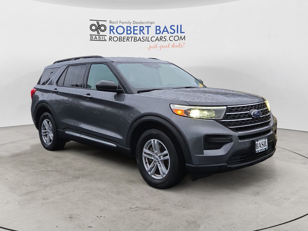 CARFAX One-Owner. Clean CARFAX. Carbonized Gray Metallic 2022 Ford Explorer XLT 4WD 10-Speed Automatic 2.3L EcoBoost I-4 4WD, 1st Row Heated Seats, Dual front impact airbags, Dual front side impact airbags, Emergency communication system: SYNC 3 911 Assist, Equipment Group 200A, Heated front seats, Knee airbag, Occupant sensing airbag, Overhead airbag, Power driver seat, Power Liftgate, Steering wheel mounted audio controls, SYNC 3 Communications & Entertainment System, SYNC 3/Apple CarPlay/Android Auto, Unique Cloth Captain's Chairs.