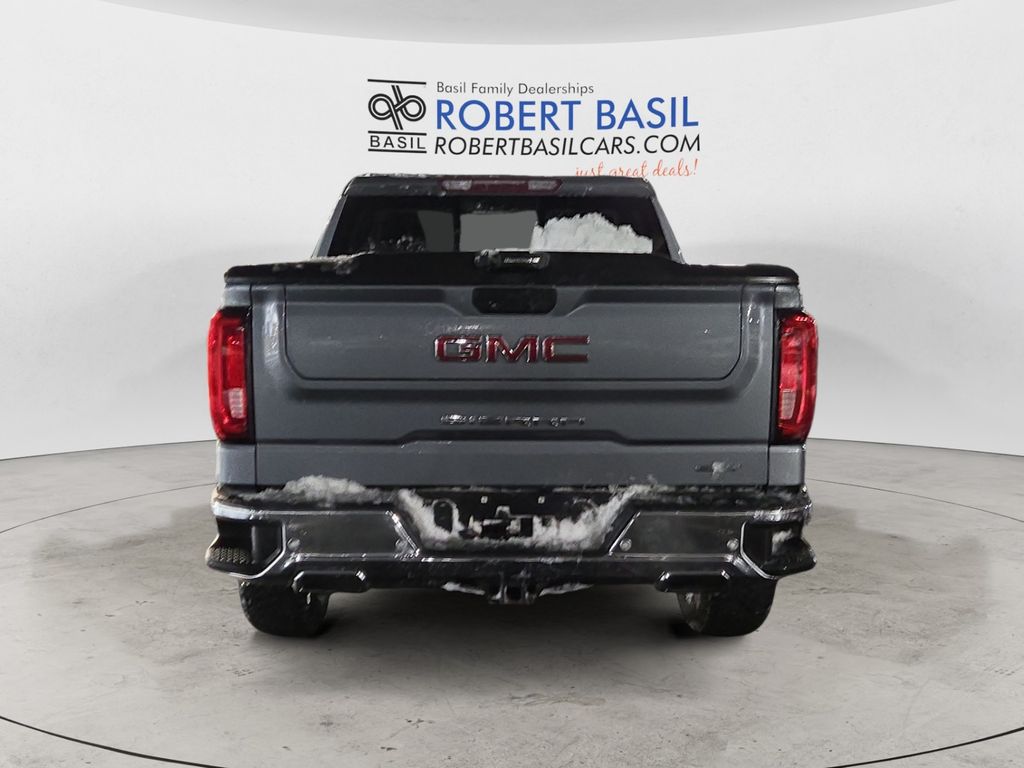 Clean CARFAX. Satin Steel Metallic 2019 GMC Sierra 1500 SLT 4WD 8-Speed Automatic EcoTec3 5.3L V8 8-Speed Automatic, 4WD, Jet Black Leather, 12-Volt Rear Auxiliary Power Outlet, 120-Volt Bed Mounted Power Outlet, 120-Volt Instrument Panel Power Outlet, 170 Amp Alternator, 2 USB Ports, 2 USB Ports (1st Row), Auxiliary External Transmission Oil Cooler, Chrome Assist Steps, Chrome Grille, Color-Keyed Carpeting Floor Covering, Compass, Deep-Tinted Glass, Driver Alert Package I, Driver Alert Package II, Electric Rear-Window Defogger, Electrical Lock Control Steering Column, Floor Mounted Console, Following Distance Indicator, Forward Collision Alert, Front Bucket Seats, Front Frame-Mounted Black Recovery Hooks, Front Pedestrian Braking, GMC 4G LTE, GMC Connected Access, HD Radio, Heated 2nd Row Outboard Seats, Heated Driver & Front Passenger Seating, Heavy-Duty Rear Locking Differential, Hitch Guidance, Hitch Guidance w/Hitch View, In-Vehicle Trailering App, Integrated Trailer Brake Controller, IntelliBeam Automatic High Beam On/Off, Keyless Open & Start, Lane Change Alert w/Side Blind Zone Alert, Lane Keep Assist w/Lane Departure Warning, LED Cargo Area Lighting, Low Speed Forward Automatic Braking, Manual Tilt-Wheel & Telescoping Steering Column, OnStar & GMC Connected Services Capable, Perimeter Lighting, Power Door Locks, Power Front Passenger Windows w/Express Up/Down, Power Front Windows w/Driver Express Up/Down, Power Rear Windows w/Express Down, Power Sliding Rear Window w/Rear Defogger, Preferred Equipment Group 4SA, Premium Bose 7-Speaker Sound System, Radio: Premium GMC Infotainment Sys w/Navigation, Rear Cross Traffic Alert, Rear Dual USB Charging-Only Ports, Rear Wheelhouse Liners, Remote Vehicle Starter System, Safety Alert Seat, SiriusXM Radio, SLT Convenience Package, SLT Preferred Package, SLT Premium Plus Package, Spray-On Pickup Bed Liner w/GMC Logo, Steering Wheel Audio Controls, Theft Deterrent System (Unauthorized Entry), Trailer Tire Pressure Monitor System, Trailering Package, Ultrasonic Front & Rear Park Assist, Universal Home Remote, Ventilated Driver & Front Passenger Seats, Wireless Charging.