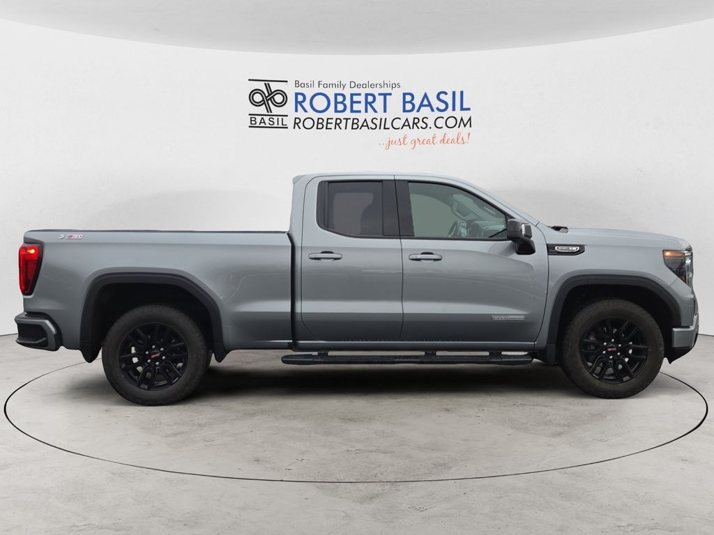 CARFAX One-Owner. Clean CARFAX. Sterling Metallic 2025 GMC Sierra 1500 Elevation 4WD 10-Speed Automatic EcoTec3 5.3L V8 10-Speed Automatic, 4WD, Black Cloth, 120-Volt Bed Mounted Power Outlet, 120-Volt Interior Power Outlet, 2 Charge/Data USB Ports, 2 Type-C Charge-Only Rear USB Ports, 6-Speaker Audio System Feature, Adaptive Cruise Control, Auto-Locking Rear Differential, Body Color Header w/Gloss Black Mesh Grille Bars, Color-Keyed Carpeting Floor Covering, Deep-Tinted Glass, Dual Exhaust System, Electric Rear-Window Defogger, Front Frame-Mounted Black Recovery Hooks, Front Rubberized-Vinyl Floor Mats, HD Rear Vision Camera, HD Surround Vision, Heavy-Duty Air Filter, High Capacity Suspension Package, High Gloss Black Mirror Caps, Hill Descent Control, Hitch Guidance, Hitch View, In-Vehicle Trailering System App, Integrated Trailer Brake Controller, Keyless Open & Start, LED Cargo Area Lighting, Manual Tilt-Wheel & Telescoping Steering Column, Navigation System, Off-Road Suspension, OnStar Services Capable, Perimeter Lighting, Power Door Locks, Power Front Windows w/Driver Express Up/Down, Power Front Windows w/Passenger Express Down, Power Rear Windows w/Express Down, Power Sliding Rear Window w/Rear Defogger, Preferred Equipment Group 3SB, Preferred Package, Premium Bose 7-Speaker Sound System, Push Button Start, Rear Cross Traffic Braking, Rear Pedestrian Detection, Rear Rubberized-Vinyl Floor Mats, Rear Wheelhouse Liners, Remote Vehicle Starter System, Sierra Safety Plus Package, SiriusXM w/360L Trial Subscription, Steering Wheel Audio Controls, Theft Deterrent System (Unauthorized Entry), Trailer Camera Provisions, Trailer Side Blind Zone Alert, Trailering Package, Ultrasonic Front & Rear Park Assist, Universal Home Remote, Wi-Fi Hotspot Capable, Wireless Apple CarPlay/Wireless Android Auto, X31 Hard Badge, X31 Off-Road Package.