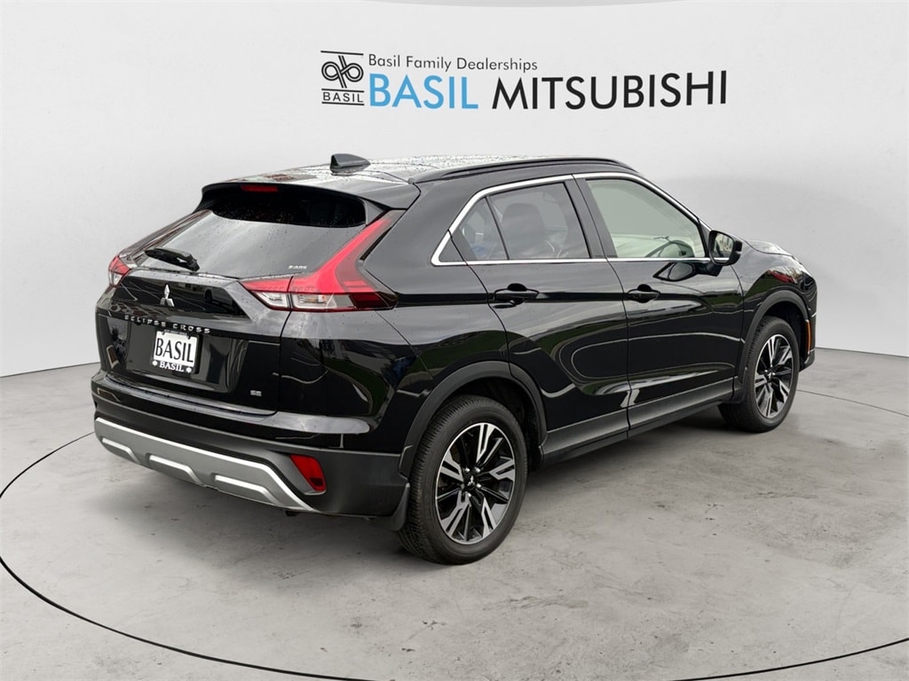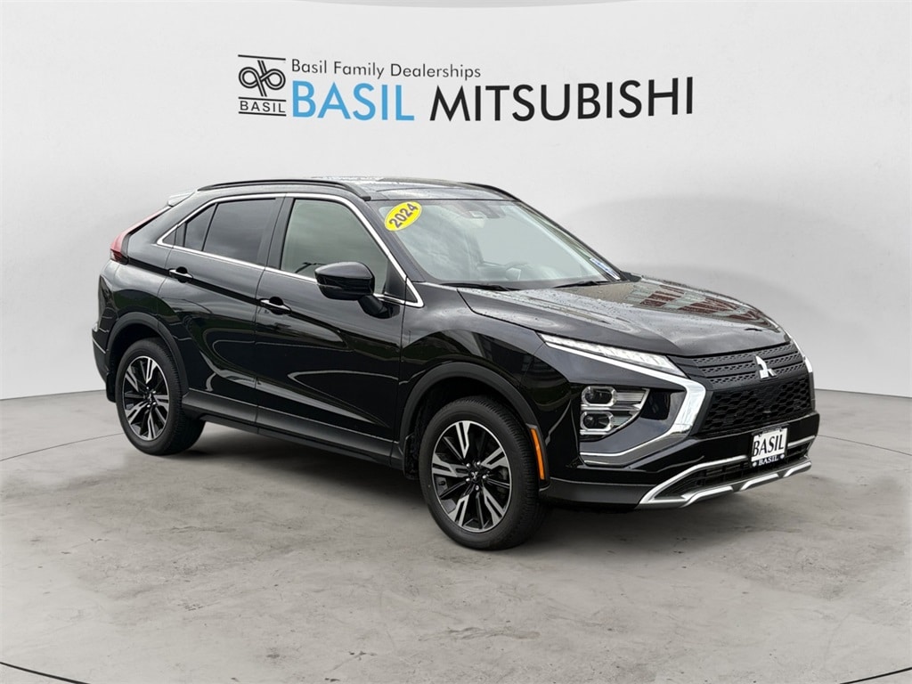 2024 Mitsubishi Eclipse Cross Labrador Black SE Panoramic Sunroof Pack 4WD CVT 1.5L I4 DI Turbocharged DOHC 16V LEV3-ULEV70 152hp -- ANDROID AUTO --, -- APPLE CAR PLAY --, -- HEATED SEATS --, -- POWER SUNROOF --, -- Power Liftgate --, -- Remote keyless entry --, -- EX SERVICE LOANER --, -- LOANER MUST QUALIFY FOR REBATE SEE DEALER --, ABS brakes, Alloy wheels, AM/FM radio: SiriusXM, Android Auto & Apple CarPlay, Black Roof Rails, Brake assist, Electronic Stability Control, Emergency communication system, Exterior Parking Camera Rear, Front dual zone A/C, Heated door mirrors, Heated Front Bucket Seats, Heated front seats, Illuminated entry, Low tire pressure warning, Navigation System, Panoramic Sunroof Package (P1), Power door mirrors, Power driver seat, Power Liftgate, Power Panoramic Sunroof, Power windows, Radio: AM/FM 8.0" Nav System w/Smartphone-Link, Remote keyless entry, Traction control.